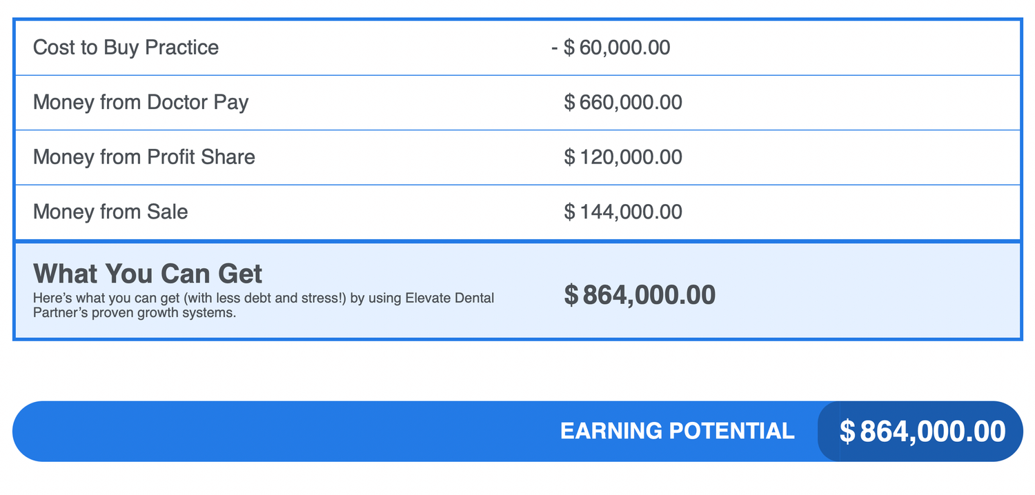 * Simulated sale in 5 years to show potential practice value, income, and profit.